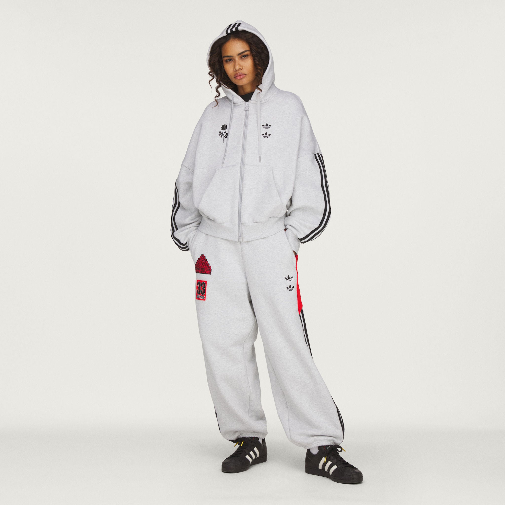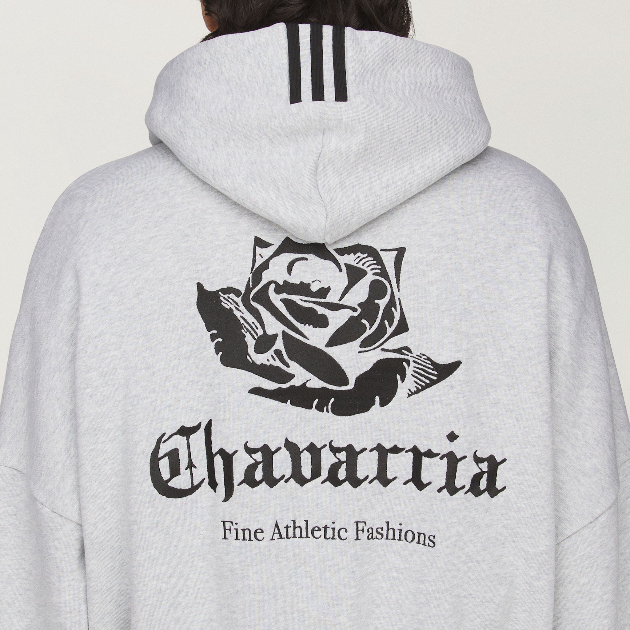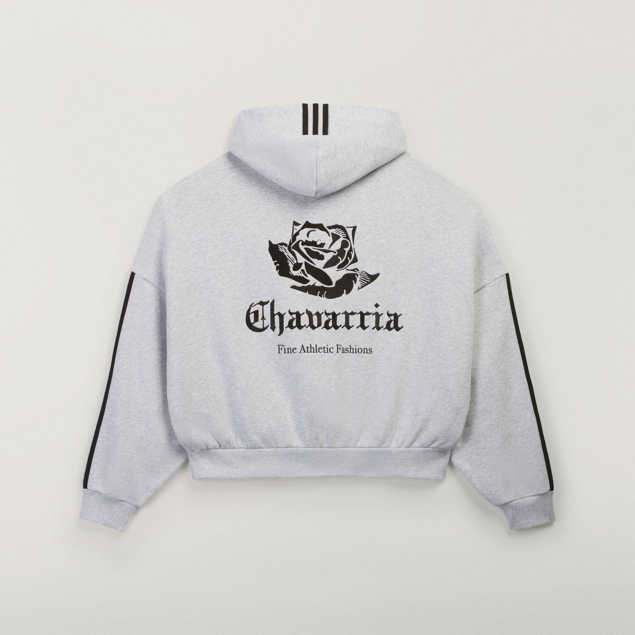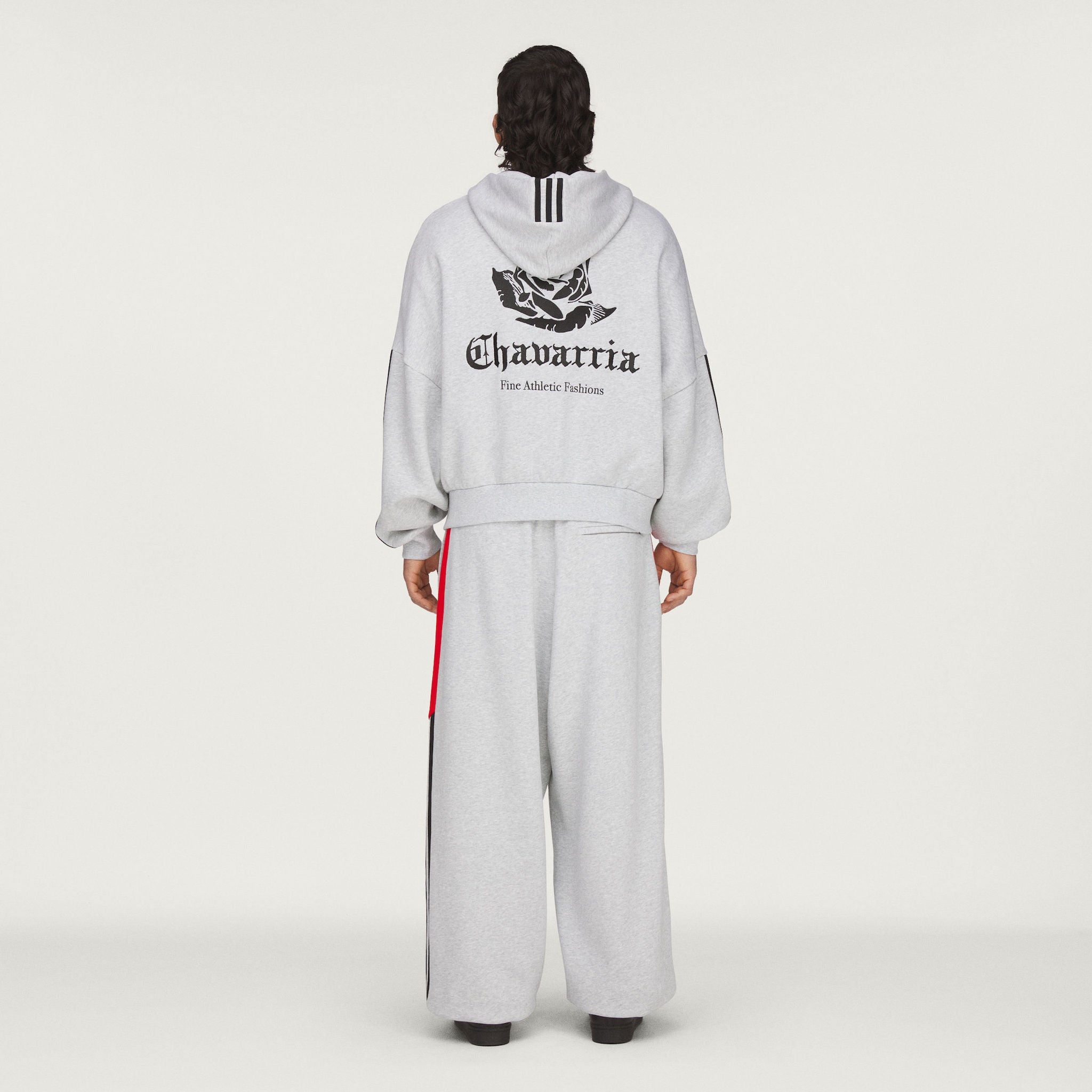 The Adidas x Willy Chavarria Full Zip Hoody is cut in an oversized silhouette with an elevated, sport-inspired edge. Designed with a full zip front and a one-piece hood with internal drawcord, it features ribbed cuffs and hem and a kangaroo pocket for everyday function. Finished with applied Three-Stripes along the sleeves and hood, and embroidered Adidas and Willy Chavarria artwork at the chest for a bold, signature detail.