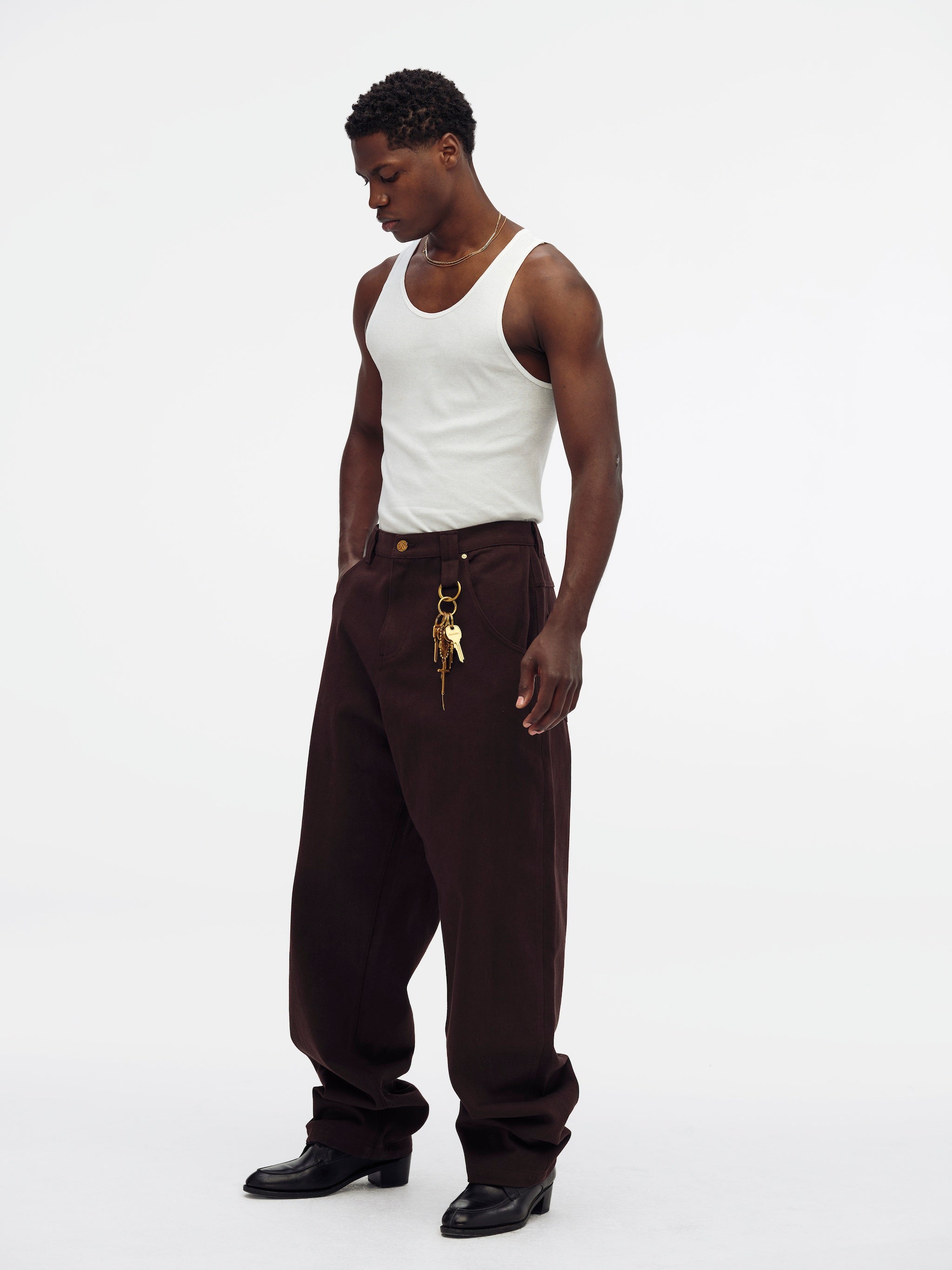 The Bad Boy Jean is a timeless staple from our denim collection, featuring a high-rise fit with a tapered leg for a refined silhouette. Crafted from 100% cotton denim with a 100% cotton lining, it’s finished with a gold button fly closure, “W” belt loops, and five belt loops including a signature key loop at the wearer’s left. A leather “WILLY” patch completes the design with a distinctive branded touch.
