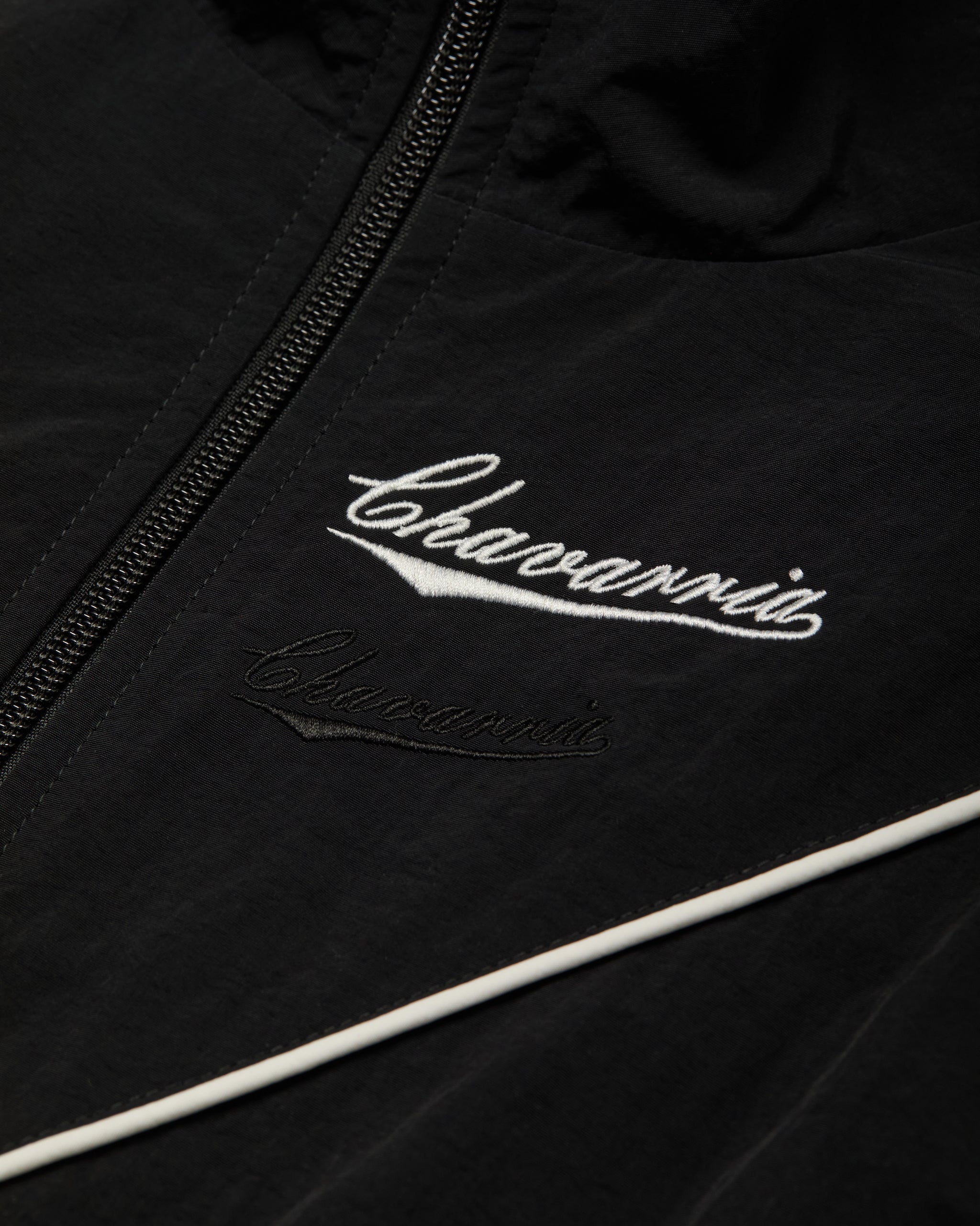 The Bad Boy Track Jacket is a sleek, sophisticated jacket boasting chevron panels accented with piping. Designed with two front body zip pockets and a stacked script logo adorning the standing collar, it’s crafted with a 100% nylon shell and fully lined in cupro for a smooth, elevated finish. Fits true to size.