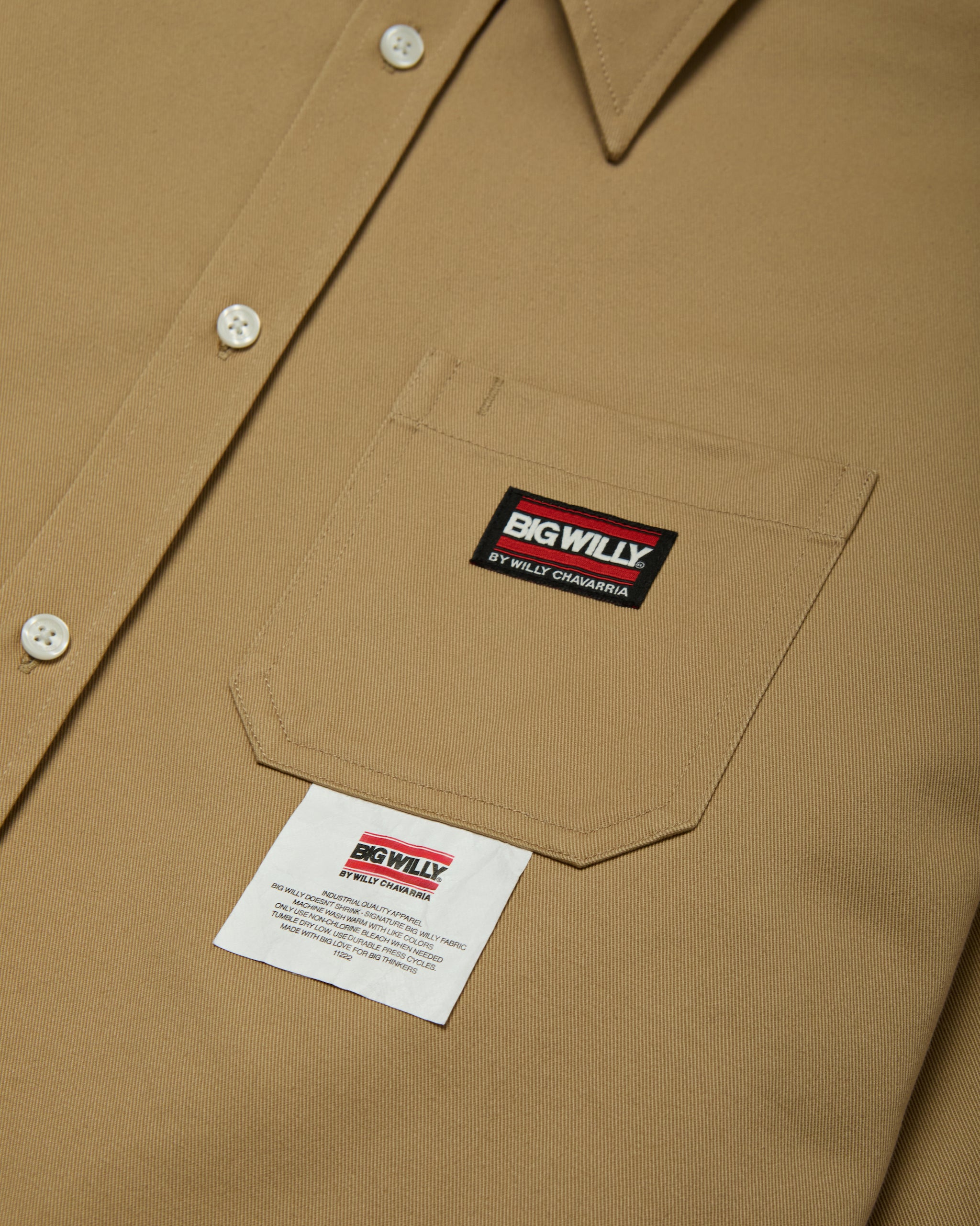 The Big Willy L/S Workshirt is cut with a relaxed fit and structured shape. Made for everyday wear, it features a classic collar, button front closure, and a chest pocket for utility. Finished with the signature BIG WILLY patch at the chest, this work shirt balances function with bold, understated branding.