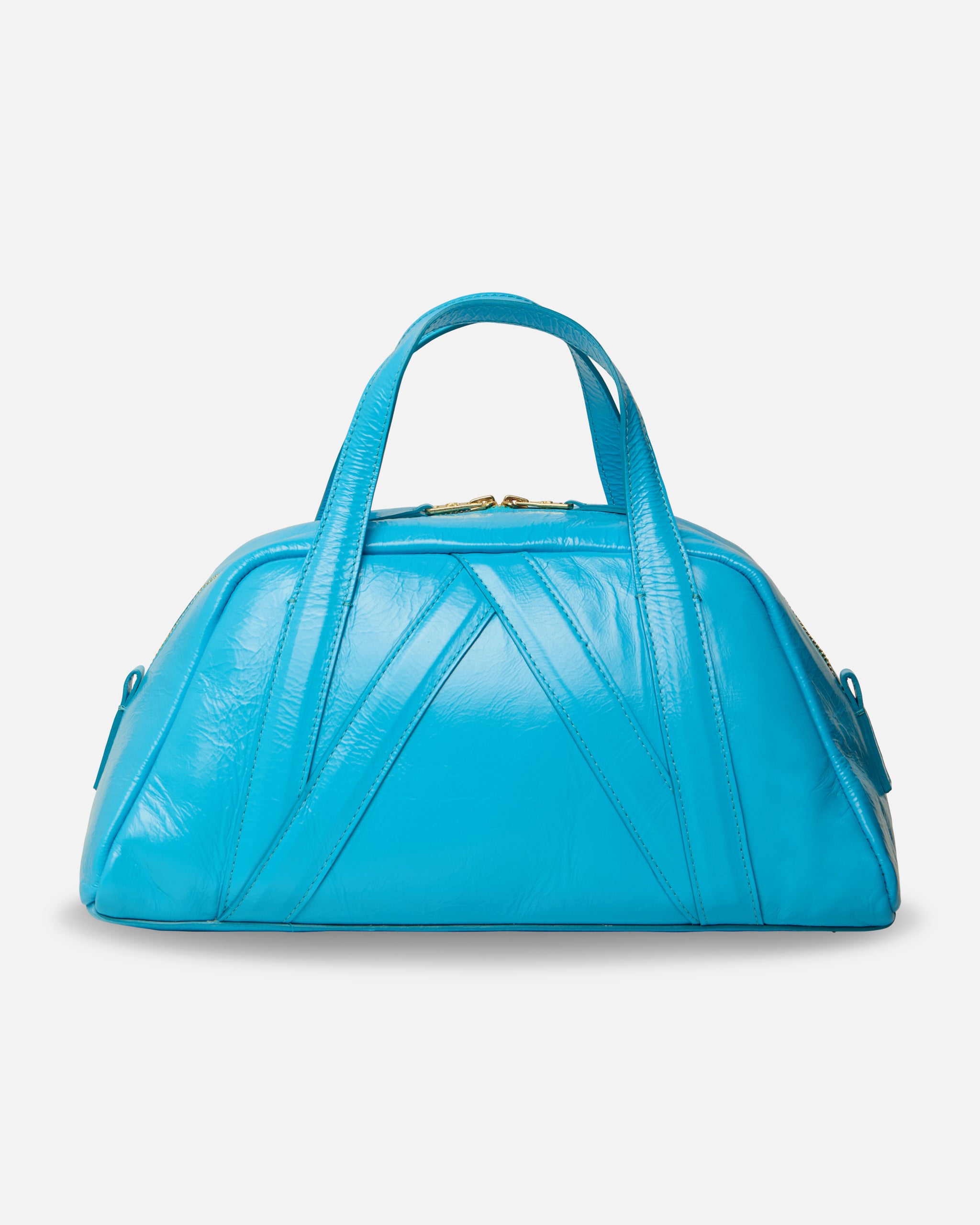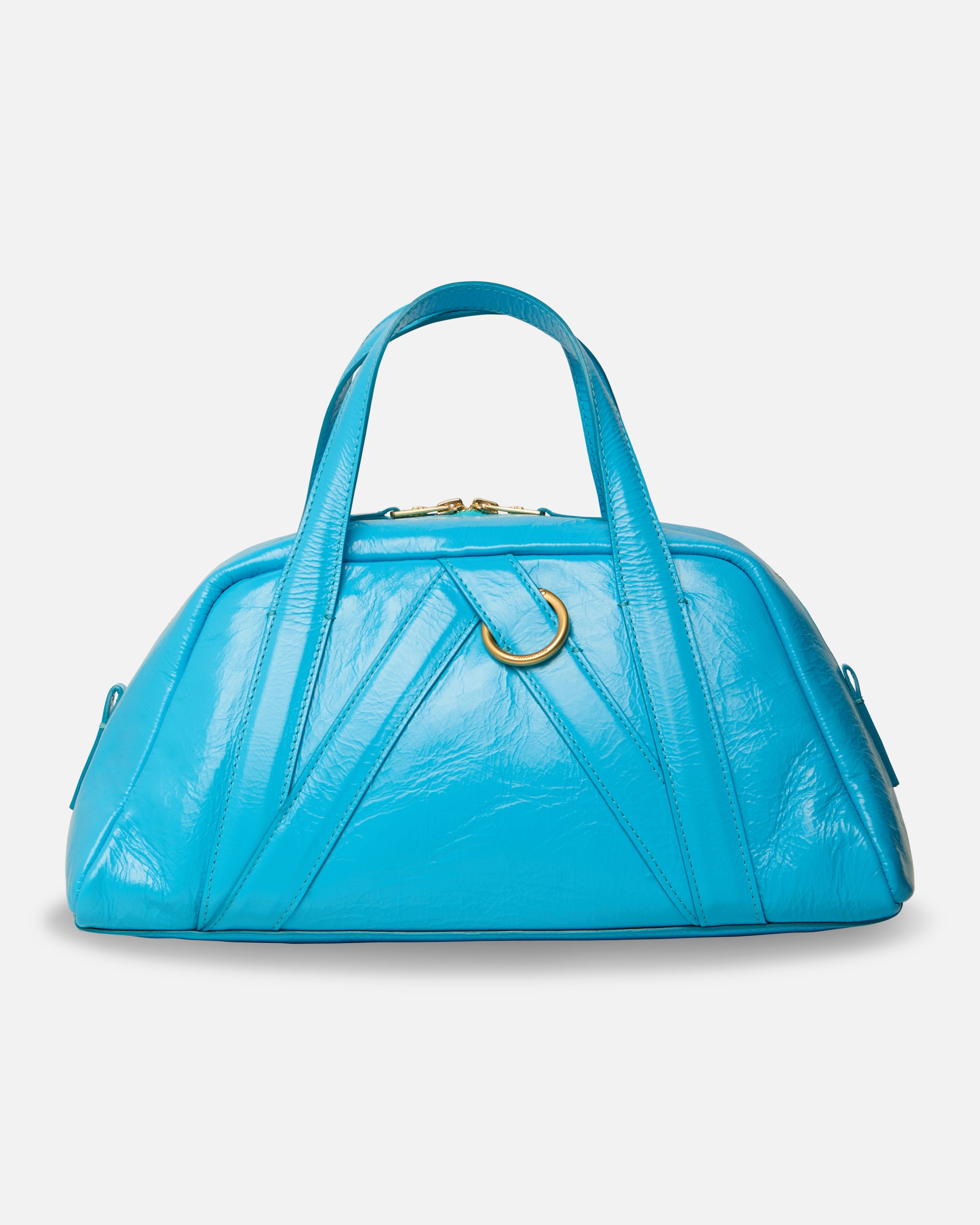 The Medium Bolero Bag is crafted from cow leather with a softly glazed finish that highlights its natural texture and structure. Designed with a gold zipper closure for secure carry, the silhouette features sculptural paneling and precision topstitching throughout. A metal ring hardware detail anchors the design, while rolled top handles and an adjustable crossbody strap offer versatile wear. The interior is fully lined and includes a zippered wall pocket for organized storage. A refined everyday bag defined by thoughtful construction and understated impact.