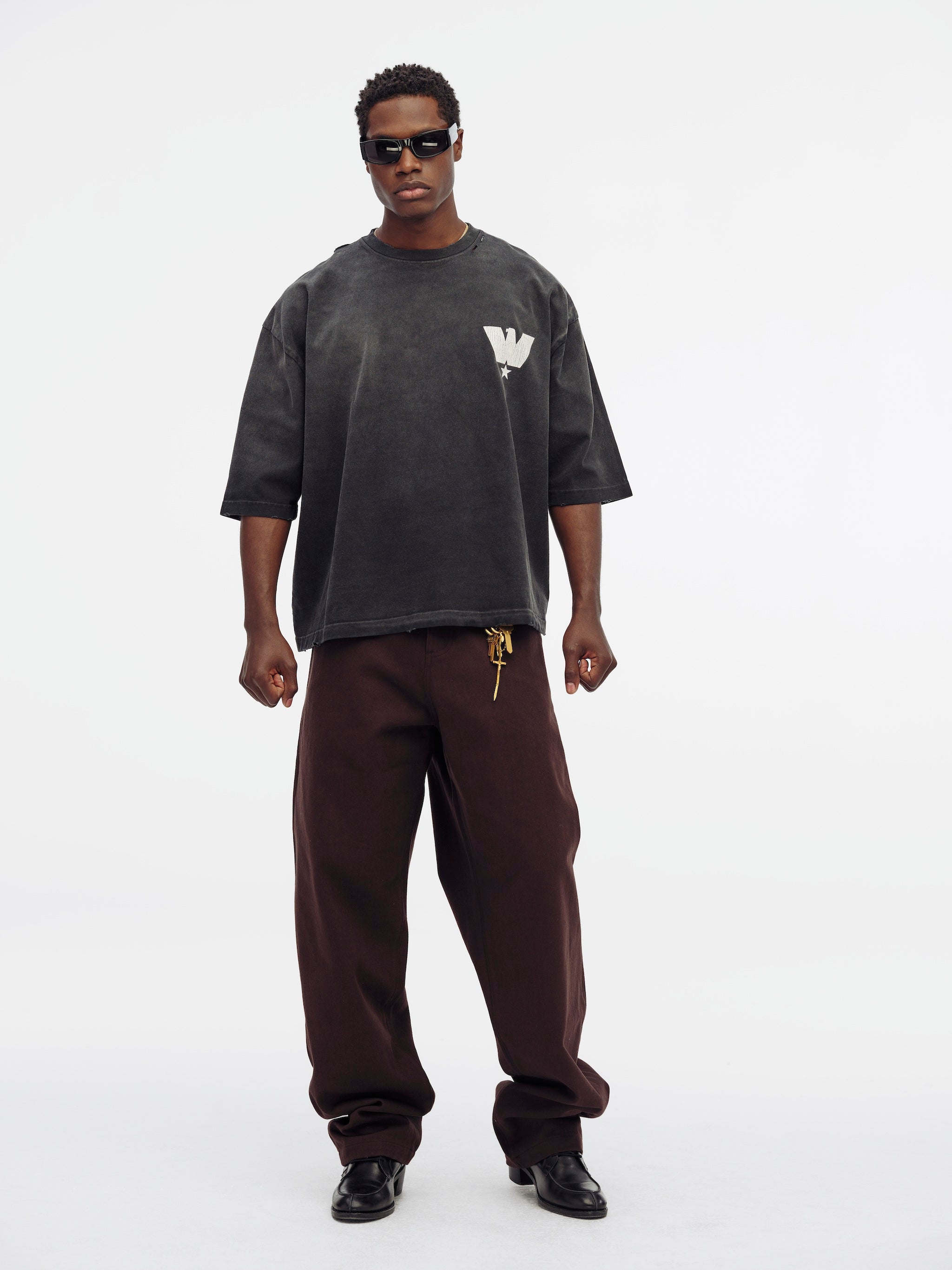 The Fashion Service Assoc. Buffalo Tee features an oversized boxy fit. With its drop shoulder design, it seamlessly blends comfort with contemporary style for an effortlessly cool look. Crafted from 100% cotton, it feels soft and breathable, fitting true to size.
