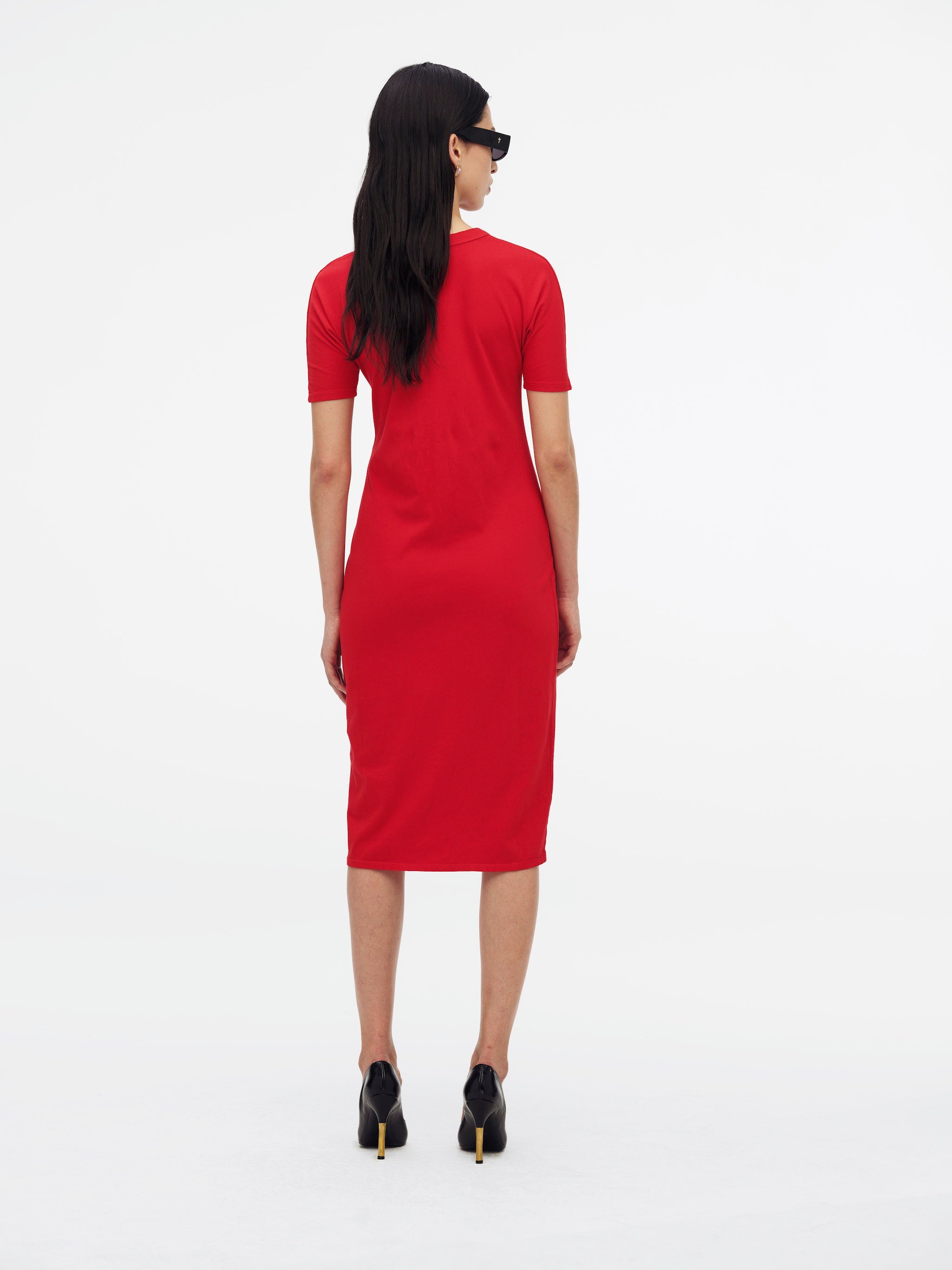 The Her Pleasure Stiletto T-Shirt Dress features a relaxed, oversized fit for effortless comfort and everyday wear. Crafted from 100% cotton, it feels soft, breathable, and easy to style. Its minimalist design makes it a versatile wardrobe. Fits true to size.