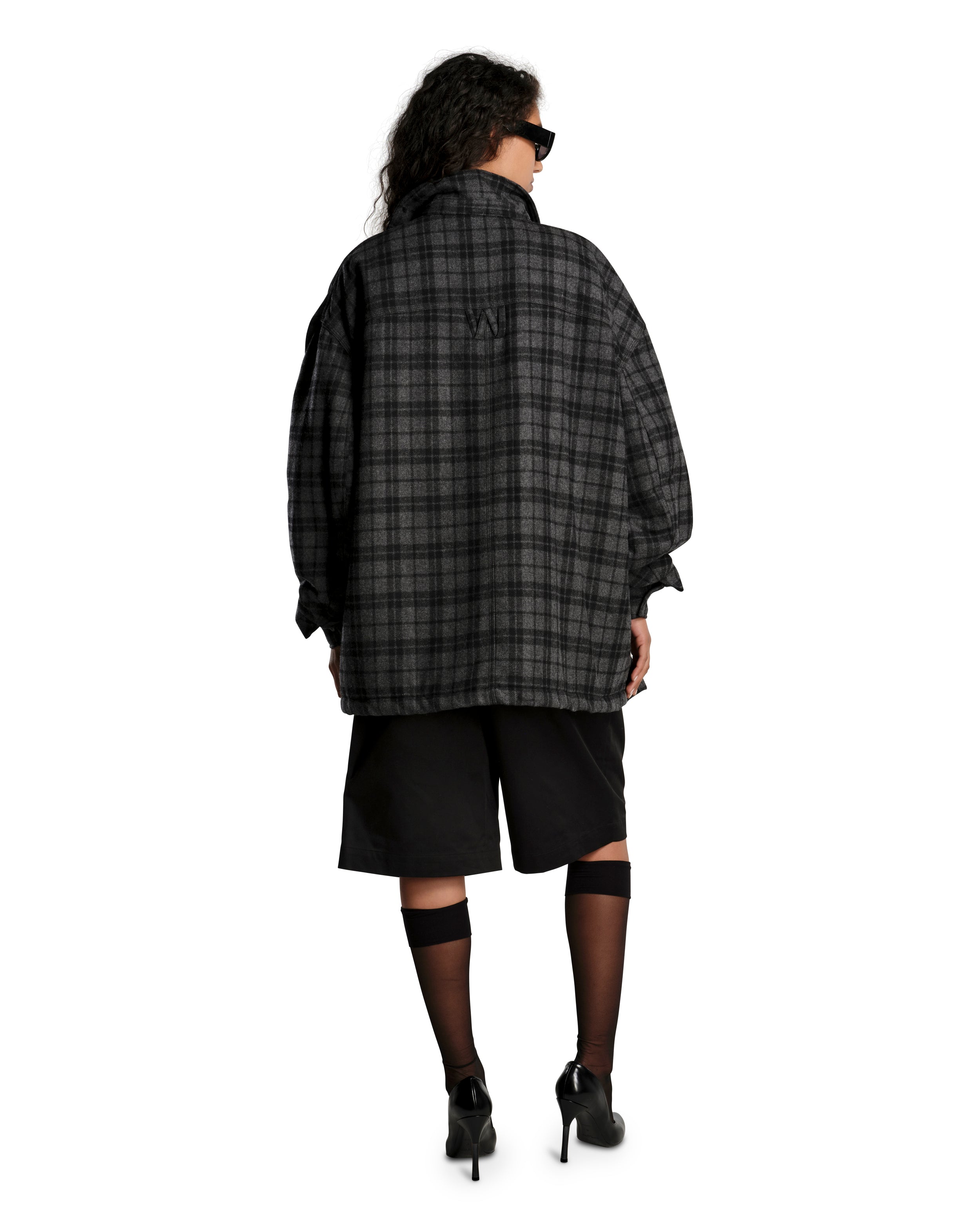 The Quilted Overshirt offers a modern, boxy silhouette with sloped, rounded shoulders and a straight hem. Designed with a quilted lining for comfort and layering, it features dual chest patch pockets, waist welt pockets, and buttoned cuffs for utility-driven style. Finished with a collared neckline and signature “W” tab at the center back, it’s a versatile oversized piece that balances structure and ease.