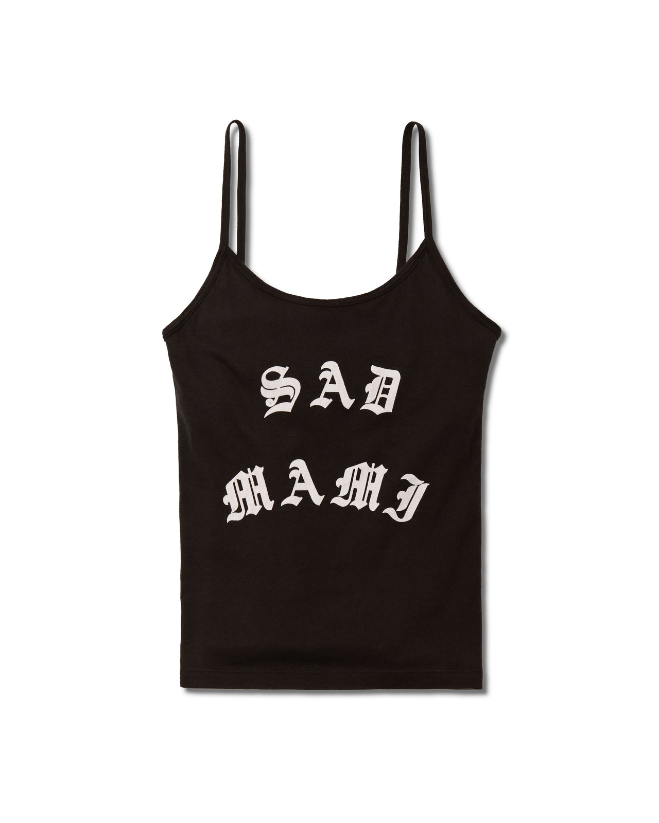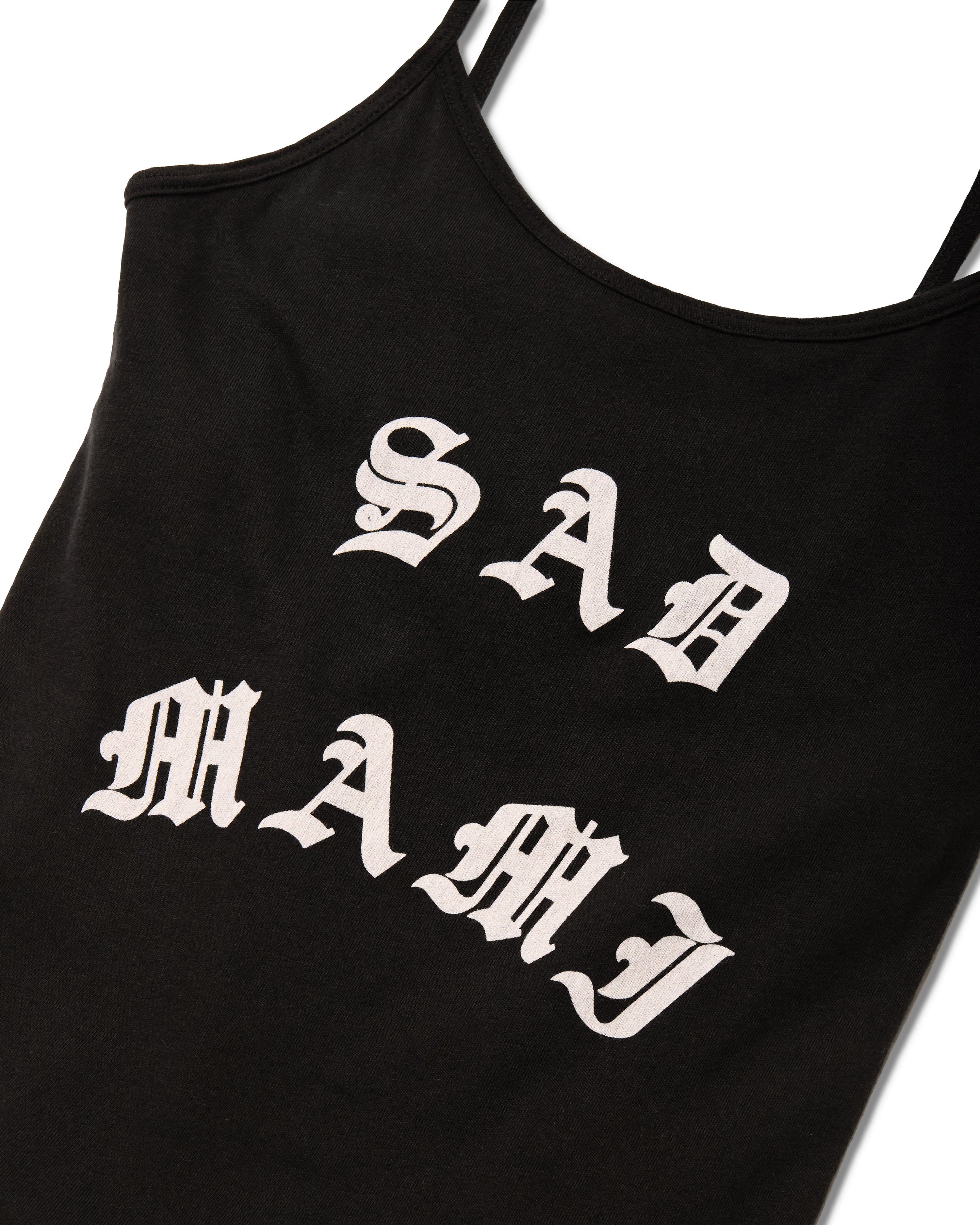 The Sad Mami Cholita Tank brings attitude and edge to a sleek silhouette. Designed with a bold screenprint and delicate straps, it offers a form-fitting shape that pairs effortlessly with any look.