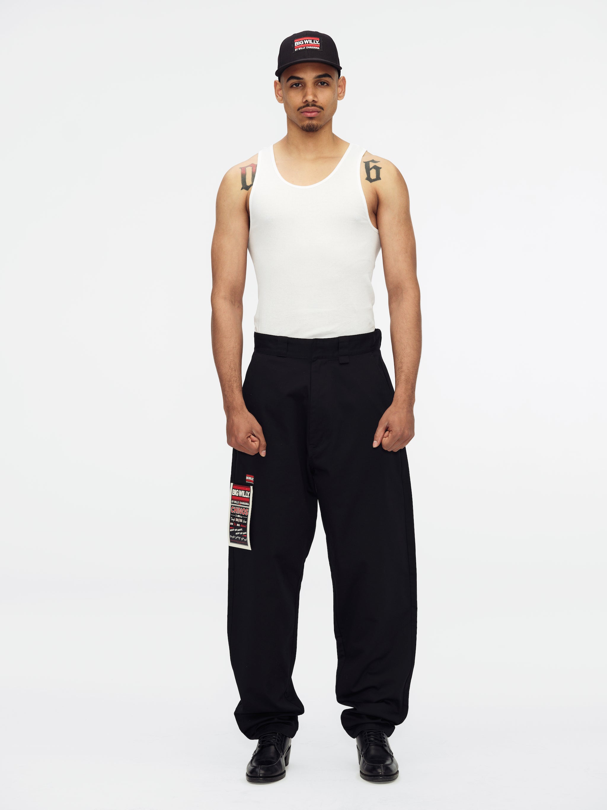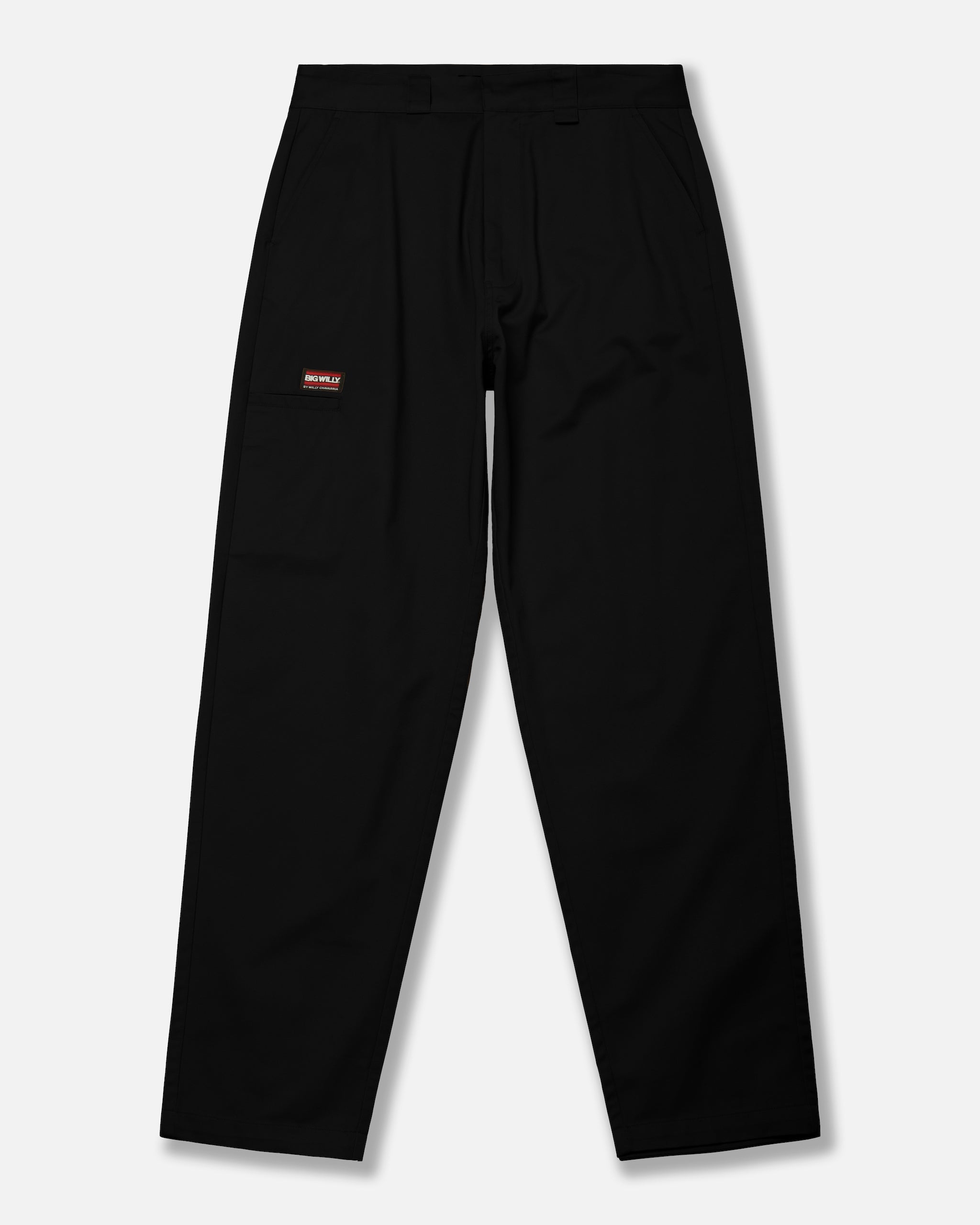The Big Willy Chino is cut with a relaxed, wide leg and a full-length fit for a strong, modern shape. Made from a durable poly-cotton blend, it features a clean waistband with belt loops, side seam pockets, and back welt pockets for everyday wear. Finished with a BIG WILLY patch on the leg, this chino delivers bold proportion with understated detail.